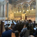 We were able to join the “lock-in“ in the Holy Sepulcher last night. So some of our group spent hours in prayer and reflection during the night alone in the Holy Sepulcher. This church encompasses Calvary and the Tomb of Christ. On Sunday we made our way to the Temple Mount where we saw the Dome of the Rock, where the Jewish Temple once stood. Then we walked to the Cenacle on Mt Zion (the site of the Last Supper) to celebrate the mass of Corpus Christi! Who could plan this?